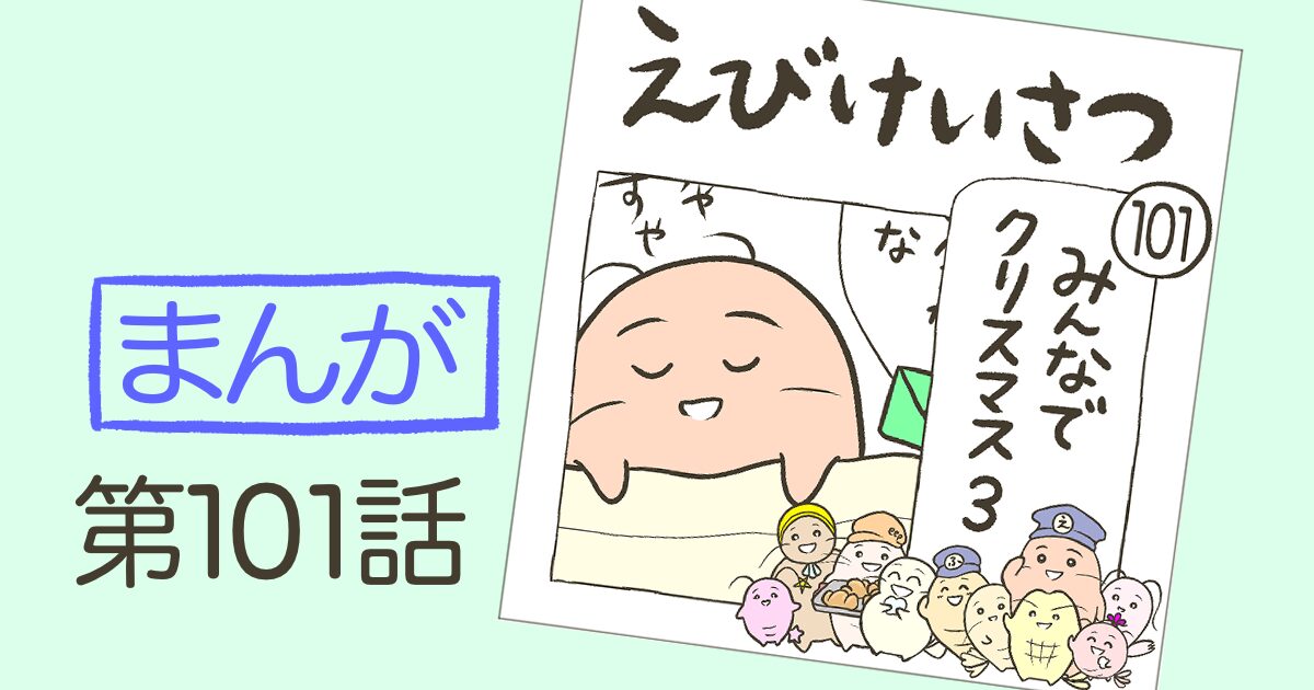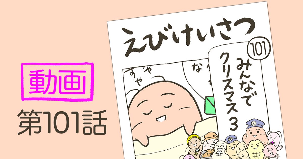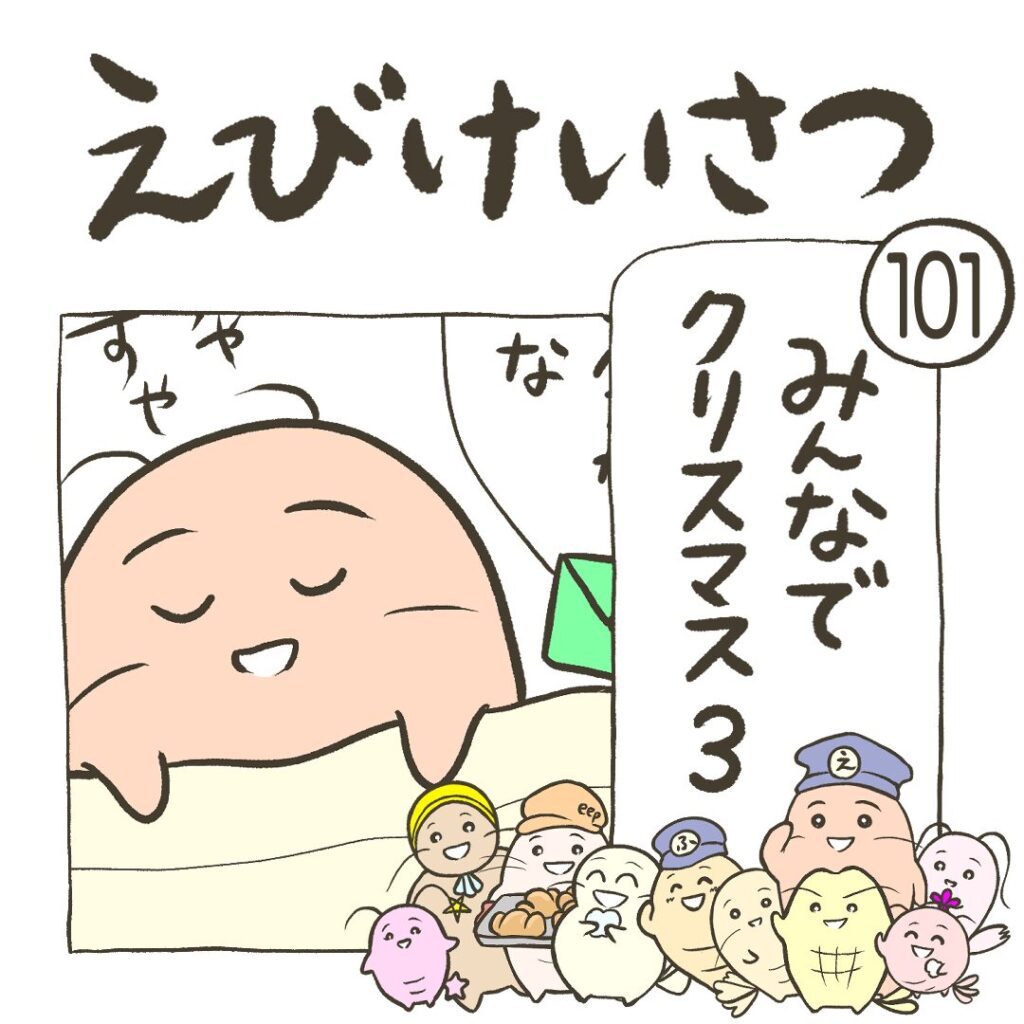 【まんが】第101話 みんなでクリスマス3 まんが 2025.12.242025.12.26 クリスマスイブだね。えび達みんなの思いは届くのかな? 同じストーリーの動画もあるよ。オリジナルピアノ曲とイラストに動きをつけた約1分の動画だよ↓ 【動画】第101話 みんなでクリスマス3静かな夜。クリスマスイブにえび達の思いは届く?※ 画面を大きくする時は、再生ボタンを押した後、右下の白い四角枠 か2つの斜め矢印 を押してね。同じストーリーのまんが(静止画)もあるよ。ゆっくり見たいときは、こちらを見てね↓次の話はこちら↓前... 次の話はこちら↓ 【まんが】第102話 おもち会のおもち紹介もうすぐお正月!もちえびちゃん、もちもちえびちゃん、おもち会の出番だよ。同じストーリーの動画もあるよ。オリジナルピアノ曲とイラストに動きをつけた約1分の動画だよ↓次の話はこちら↓前回の話はこちら↓ 前回の話はこちら↓ 【まんが】第100話 みんなでクリスマス2クリスマスパーティーする前にやるべきことがあった2人。一体なにをするのかな?同じストーリーの動画もあるよ。オリジナルピアノ曲とイラストに動きをつけた約1分の動画だよ↓次の話はこちら↓前回の話はこちら↓