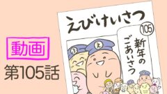 「楽しくなれる粉」を買ったことを報告するもちえびちゃん。一体どこで手に入れたの⁉驚いたえびけいさん、急いで出動するよ。みんな甘い誘惑に負けないで!