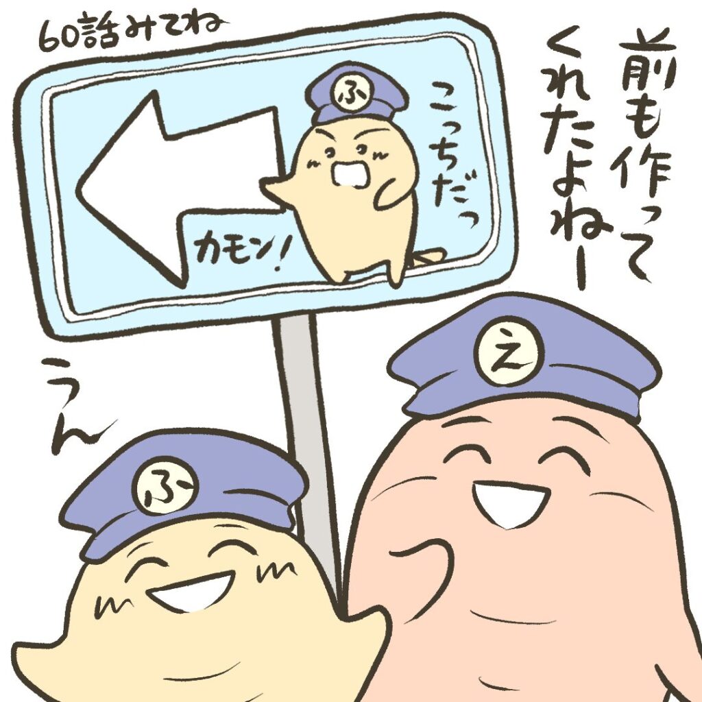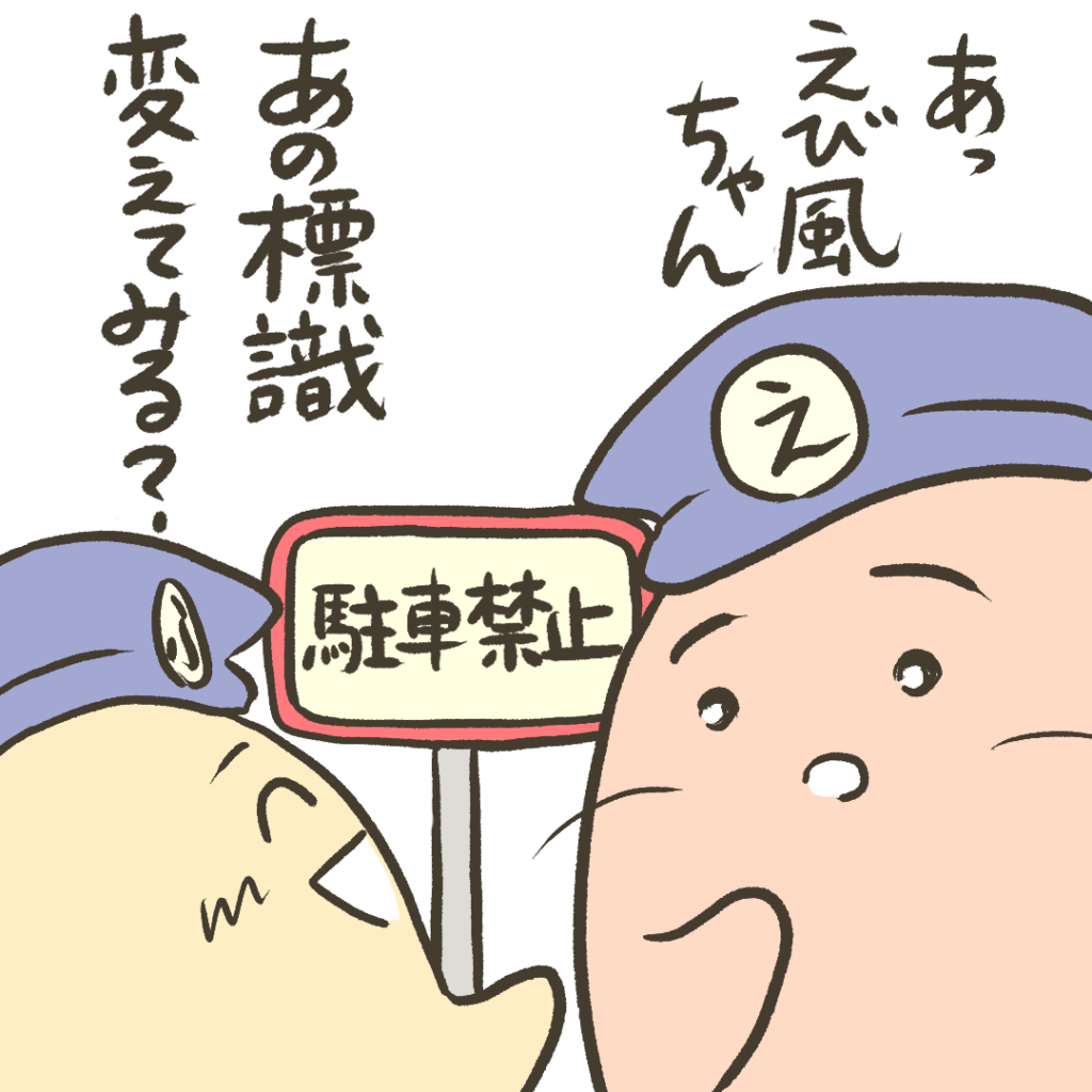 過去にえび風ちゃんが作った標識が登場する第60話はこちら↓