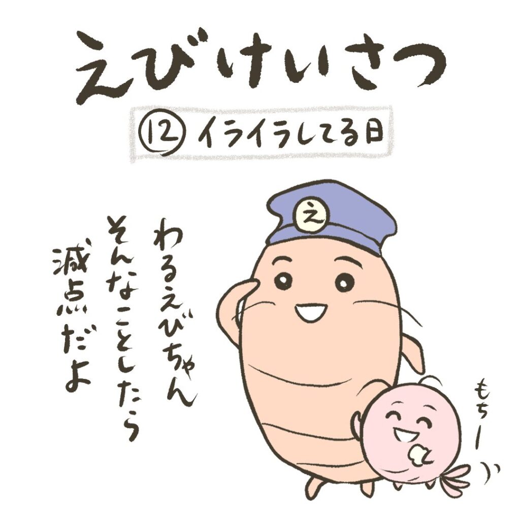 【まんが】第12話 イライラしてる日 まんが 2025.10.19 イライラすると危ないよ。やさしい心で前に進もうね。 同じストーリーの動画もあるよ。オリジナルピアノ曲とイラストに動きをつけた約1分の動画だよ↓【動画】第12話 イライラしてる日 次の話はこちら↓ 【まんが】第13話 どうしても知りたいえび交番に一本の電話が!えびけいさつ急いで現場へ駆けつけるよ。同じストーリーの動画もあるよ。オリジナルピアノ曲とイラストに動きをつけた約1分の動画だよ↓【動画】第13話 どうしても知りたい次の話はこちら↓前回の話はこちら↓ 前回の話はこちら↓ 【まんが】第11話 すきあらば隙を見せたら悪者につけこまれるよ。気をつけよう!同じストーリーの動画もあるよ。オリジナルピアノ曲とイラストに動きをつけた約1分の動画だよ↓【動画】第11話 すきあらば次の話はこちら↓前回の話はこちら↓