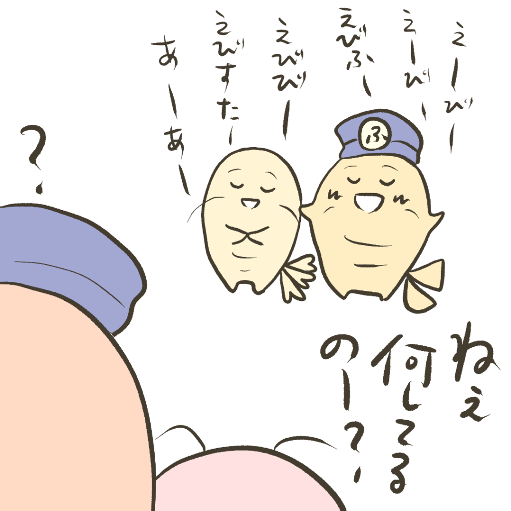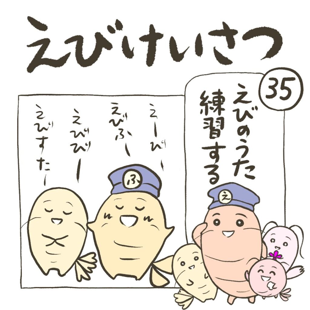 【まんが】第35話 えびのうた練習する まんが 2025.11.022025.11.27 えび町で流行中の「えびのうた」練習するよ♪ 同じストーリーの動画もあるよ。オリジナルピアノ曲とイラストに動きをつけた約1分の動画だよ↓【動画】第35話 えびのうた練習する 次の話はこちら↓ 【まんが】第36話 推し活は自腹で推しに会いたい気持ちはわかるよ。でも自分のお金で応援しようね!同じストーリーの動画もあるよ。オリジナルピアノ曲とイラストに動きをつけた約1分の動画だよ↓【動画】第36話 推し活は自腹で次の話はこちら↓前回の話はこちら↓ 前回の話はこちら↓ 【まんが】第34話 今度こそ確保する前回失敗してしまった新人警官のえび風ちゃん。今度こそうまくいくかな?同じストーリーの動画もあるよ。オリジナルピアノ曲とイラストに動きをつけた約1分の動画だよ↓【動画】第34話 今度こそ確保する次の話はこちら↓前回の話はこちら↓