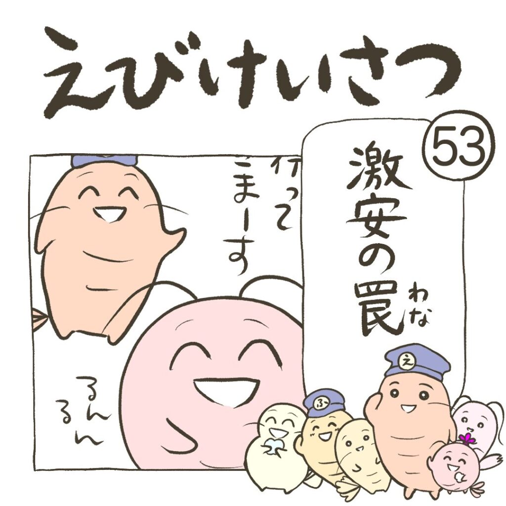 【まんが】第53話 激安の罠 まんが 2025.11.132025.11.27 大好きなものが激安なんだって。急いで買いに行かないと! 同じストーリーの動画もあるよ。オリジナルピアノ曲とイラストに動きをつけた約1分の動画だよ↓【動画】第53話 激安の罠 次の話はこちら↓ 【まんが】第54話 流行にのりたいえび町できれいなものが流行ってるよ。みんな身に付けたいよね。同じストーリーの動画もあるよ。オリジナルピアノ曲とイラストに動きをつけた約1分の動画だよ↓【動画】第54話 流行にのりたい次の話はこちら↓前回の話はこちら↓ 前回の話はこちら↓ 【まんが】第52話 海は楽しいけれど3海の救世主が伝えたいこととは?海を楽しむための心得おぼえておこう。同じストーリーの動画もあるよ。オリジナルピアノ曲とイラストに動きをつけた約1分の動画だよ↓【動画】第52話 海は楽しいけれど3次の話はこちら↓前回の話はこちら↓