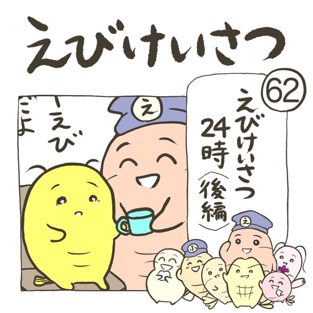 【まんが】第62話 えびけいさつ24時〈後編〉 まんが 2025.11.142025.11.27 えびけいさつは午後も大忙し。どんなことが起こるかな? 同じストーリーの動画もあるよ。オリジナルピアノ曲とイラストに動きをつけた約1分の動画だよ↓【動画】第62話 えびけいさつ24時〈後編〉 次の話はこちら↓ 【まんが】第63話 あの日を振り返る2わるえびちゃんの悪事を振り返るインタビュー第二弾。どんな話が聞ける?同じストーリーの動画もあるよ。オリジナルピアノ曲とイラストに動きをつけた約1分の動画だよ↓【動画】第63話 あの日を振り返る2次の話はこちら↓前回の話はこちら↓ 前回の話はこちら↓ 【まんが】第61話 えびけいさつ24時〈前編〉えびけいさつの1日は大忙し。いろんな困りごとを解決するよ。同じストーリーの動画もあるよ。オリジナルピアノ曲とイラストに動きをつけた約1分の動画だよ↓【動画】第61話 えびけいさつ24時〈前編〉次の話はこちら↓前回の話はこちら↓