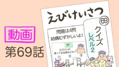 動画えびけいさつクイズだよ。簡単な問題だよ。間違えたりしないよね?ね?