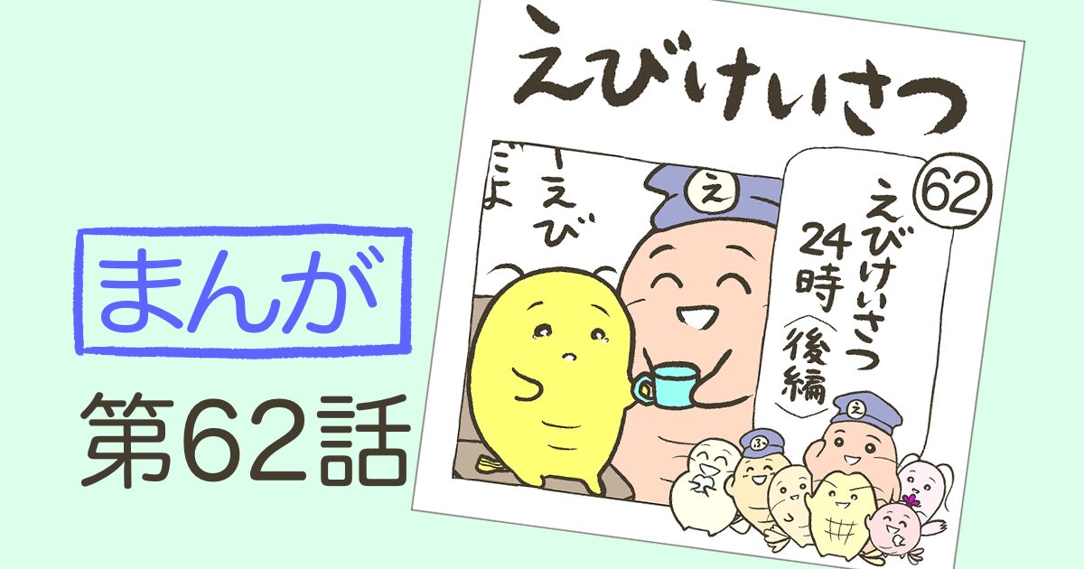 まんが 【まんが】第62話 えびけいさつ24時〈後編〉 えびけいさつは午後も大忙し。どんなことが起こるかな?同じストーリーの動画もあるよ。オリジナルピアノ曲とイラストに動きをつけた約1分の動画だよ↓【動画】第62話 えびけいさつ24時〈後編〉次の話はこちら↓前回の話はこちら↓ まんが